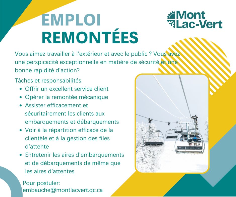 Venez faire carrière au Mont Lac-Vert !